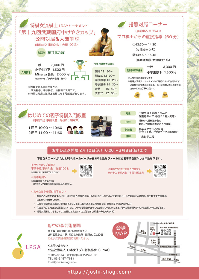 (注)お申込み方法等詳細は、日本女子プロ将棋協会(LPSA)ホームページにてご案内します。