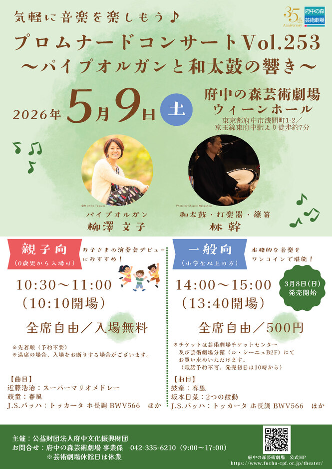 府中の森芸術劇場 事業係 042-335-6210 (休館日を除く9時から17時)